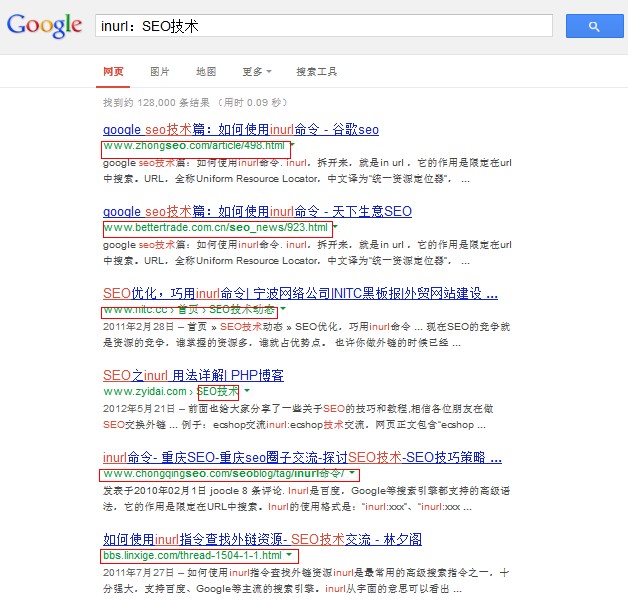 通過Googe搜索SEO技術,inurl結果